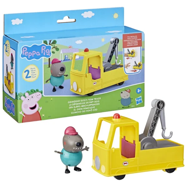 Åh nej, er bilen gået i stå? Bare rolig — Bedstefars Hunds kranvogn er på pletten! Dette Gurli Gris-legetøjssæt indeholder en legetøjskranvogn med træk tilbage-funktion. Bare skub kranvognen tilbage, og se den køre! Bedstefar Hund-figuren kan sidde i førerhuset, og det hængslede tag gør det let for små hænder at få figuren ind og ud. Med den bevægelige kran kan børnene forestille sig scener fra tv-serien eller finde på deres helt egne eventyr! Gurli-legetøj som Bedstefar Hunds kranvogn er baseret på populære Gurli Gris-figurer og er en fantastisk gaveide til alle børn fra 3 år, der elsker arbejdskøretøjer eller legetøjsbiler. © 2023 ABD Ltd/Ent. One UK Ltd. Hasbro og alle relaterede betegnelser er varemærker, der tilhører Hasbro. Fra 3 år.