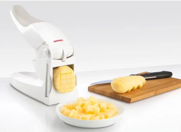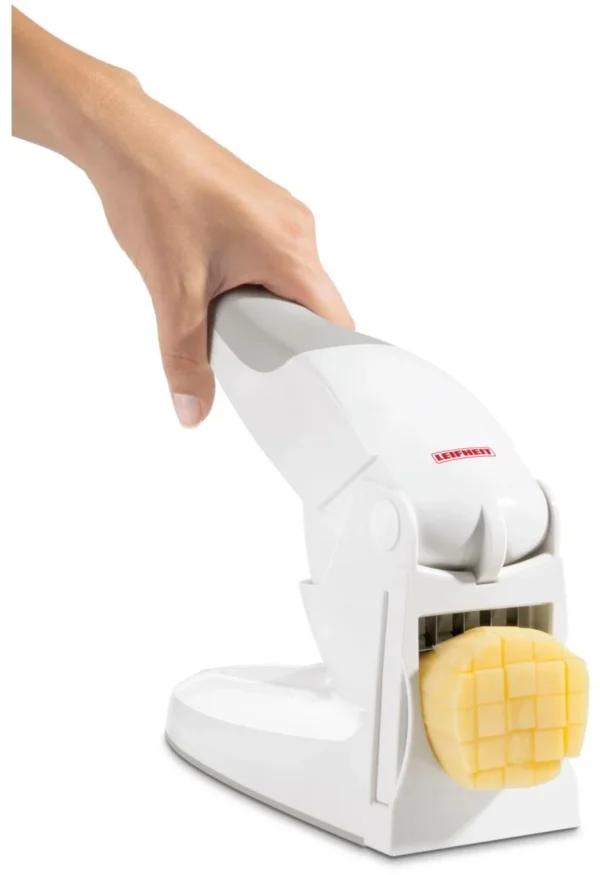Leifheit Pommes Frites-jern i hvid – den perfekte løsning til hjemmelavede pomfritter med professionelt resultat. Dette praktiske køkkenredskab fra Leifheit kombinerer gennemtænkt funktionalitet med komfortabelt design, så du nemt kan skære kartofler i ensartede stave hver gang. Den robuste præcisionsskærer sikrer et rent snit, mens soft-touch zonen på håndtaget giver et behageligt og sikkert greb under hele tilberedningsprocessen.