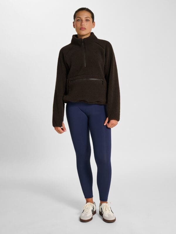 Lavet af et blødt, strikket fleecemateriale, der holder dig varm.Lynlåslomme foran.Tommelfingerhuller i manchetterne for ekstra varme og en sikker pasform under bevægelse.