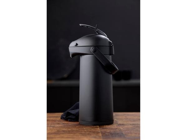 Pumpetermokanden med sit enkle og klassiske design er lige velegnet til både kolde og varme drikke. Kanden har en glasindsats, der rummer 1,9 liter, og pumpefunktionen og den roterende bund gør det nemt at hælde kaffe op.