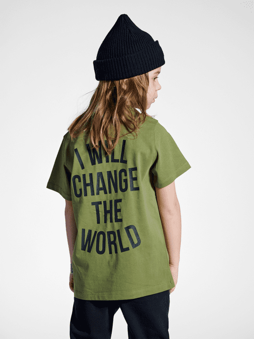 Revolutionér dit barns garderobe med stmREVOLUTION T-SHIRT S/S. Denne tidløse T-shirt med rund hals er lavet af økologisk bomuld og bærer STANDARD 100 by OEKO-TEX® mærket, så dit barn får maksimal komfort, fleksibilitet og absorberingsevne. Komplet med Sometime Soon logo fortil og “I will change the world” print bagpå.
