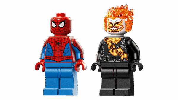 - 2 LEGO® ǀ MARVEL MINIFIGURER – Spider-Man, der svinger i sit spindelvæv, og Ghost Rider, det flammehårede skelet, inspirerer børn til fantasifuld leg