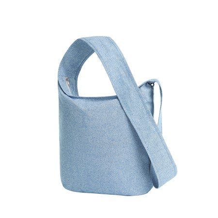 Skuldertaske i genbrugt overskudsmateriale. Lynlåslukning for oven. Inderlomme med lynlås. Bred skulderrem. 140 g/m2, 100% genbrugt bomuld (overskudsmateriale). 32 x 34 x 16 cm