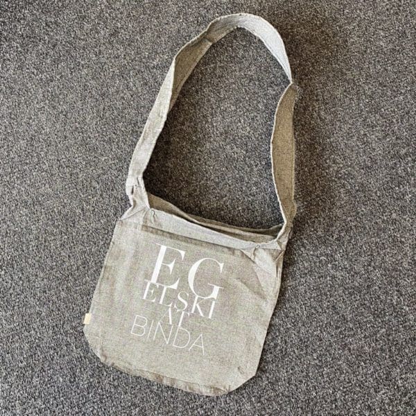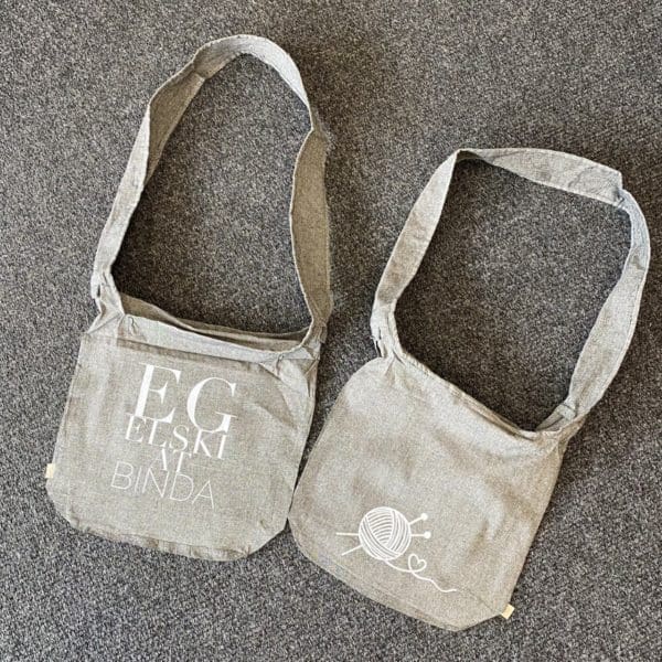 Skuldertaske i genbrugt overskudsmateriale. Lynlåslukning for oven. Inderlomme med lynlås. Bred skulderrem. 140 g/m2, 100% genbrugt bomuld (overskudsmateriale). 32 x 34 x 16 cm