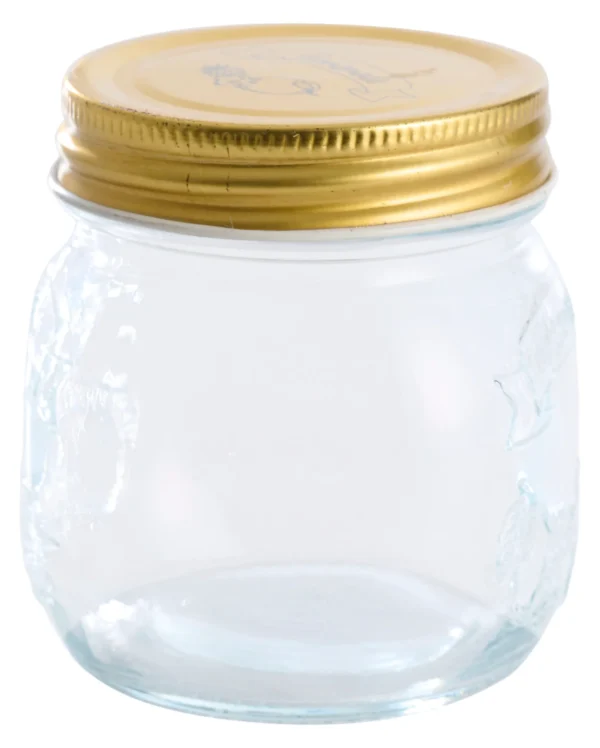 0,25 l sylteglas med metalskruelåg. Sylteglasset er perfekt til agurker, rødbeder m.m. Hvis du er vild med hjemmesyltning og er typen som gerne vil undgå en masse tilsætningsstoffer, så er disse glas til dig. På fronten er der motiv som er formet i glasset, der fuldender det lidt klassiske sylteglas. Ved sterilisering varm først op med vand fra hanen, ellers kan den springe. Str: Ø8,5 x H9 cm.