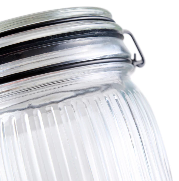 0,5 l. Med den genkendelige patentlukning er patentglasset jo nærmest ikonisk og næsten uundværlig i køkkenet. Det smarte ved patentglasset er at man kan bruge dem til næsten alt. Hvad enten det er syltning, saft eller bare suppen fra dagen før, så kan du opbevare det i patentglasset. Denne model har rifler og sort spænde. Ved sterilisering med kogende vand, kan man med fordel varme glasset under hanen så det ikke springer.