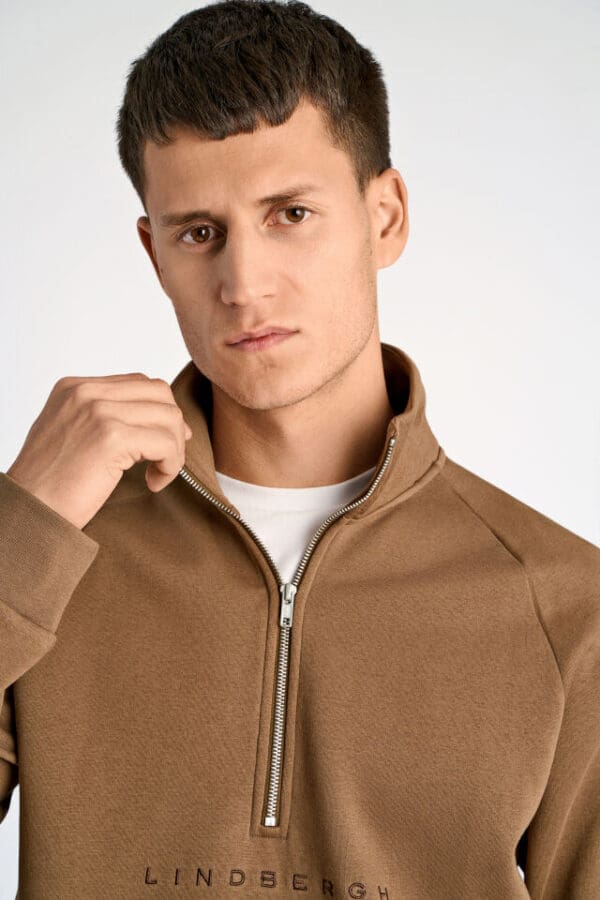 Enkel sweatshirt fra Lindbergh lavet i behagelig bomuldsblend. Ensfarvet og med ribstrik nederst på trøjen samt på ærmerne. Der er raglanærmer og lynlås i halsen. Lavet i relaxed fit, som er lidt strammere end regular fit, men stadig giver bevægelsesfrihed.