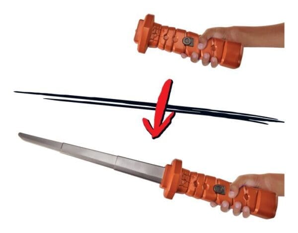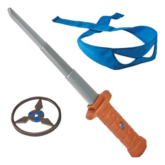 Be a leader and transform yourself into Leonardo from the hit Teenage Mutant Ninja Turtles Mutant Mayhem movie with Leonardo’s Ninja Reveal Role Play set! Tie on Leo’s royal bandana, grab his powerful Ninja Reveal Katana and throwing star and, in an instant, you’ve transformed yourself into Leonardo! When the baddies attack, unleash the power of your katana with the press of a button and a flick of the wrist to reveal the sharp katana blade. When the battle’s won, simply slide the blade back into the handle and you’re ready for the next fight!