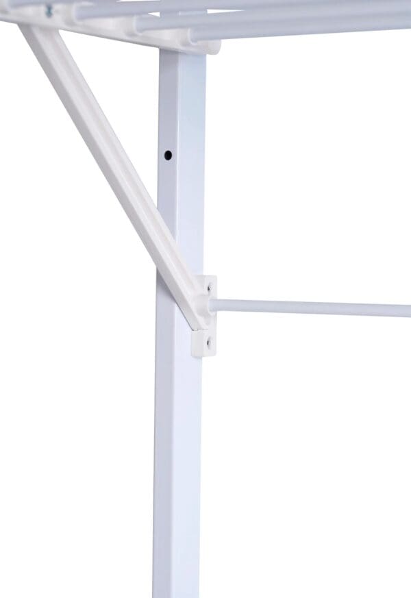Høj bæreevne Max 5kg belastning pr hylde – total max 10kg belastning pr tørrestativ Til indendørs og udendørs brug Nem og hurtig håndtering Nem at montere på væggen Tilbehør: 4 skruer i rustfrit stål