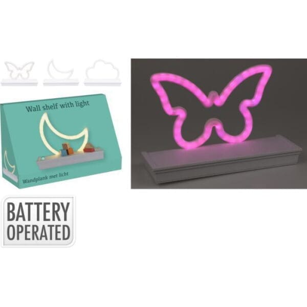 Veggjahill v/neonljós, 3 ass ljósmynstur 30x10x22